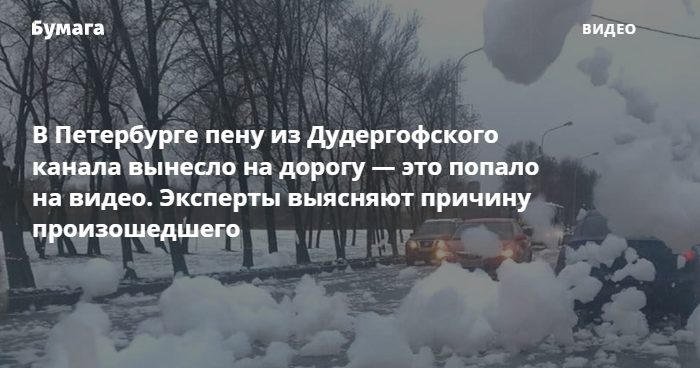 По предварительным данным, пену вынесло из Дудергофского канала. На месте работают инспекторы Роспотребнадзора и сотрудники «Водоканала», которые изучают необычное явление.