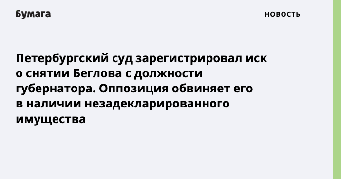 Петербургский суд зарегистрировал иск о снятии Беглова с должности губернатора