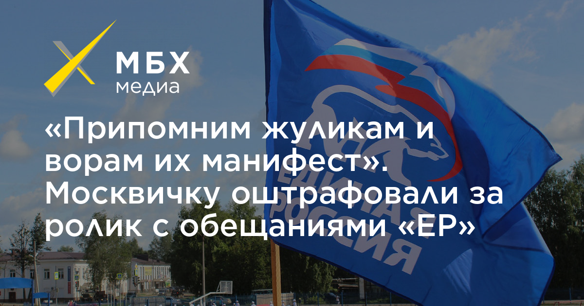 Люблинский районный суд оштрафовал на тысячу рублей москвичку К. Смирнову за публикацию во «ВКонтакте» видео об обещаниях «Единой России» «Припомним Жуликам и Ворам их Манифест — 2002». Соответствующее постановление «МБХ медиа» обнаружило в картотеке суда.