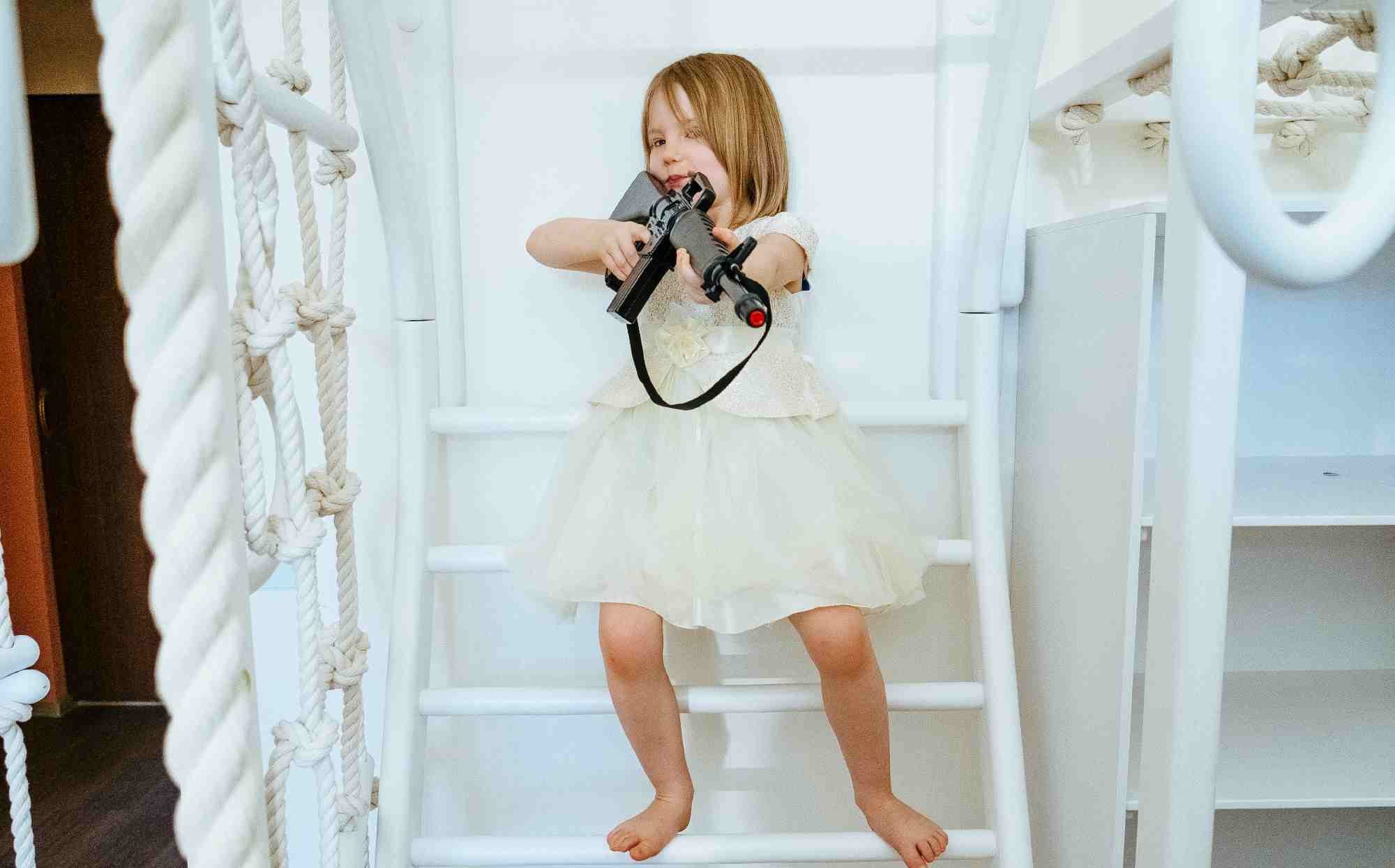 Я бы не сказала, что она очень боевая девчонка, — она фотографировалась с пистолетом брата и вряд ли бы стала просить отдельный. Но ей никогда не нравились «девчачьи» розовые платьица и игры с девочками — она дружит преимущественно с мальчиками. Дерется с братом своим по-настоящему, до крови: он самый буйный в нашей семье, ей приходится защищаться.