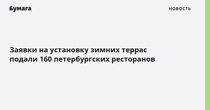 Петербургские заведения общепита подали 160 заявок на установку зимних террас. Об этом пишет «Фонтанка» со ссылкой на замглавы комитета по промышленной политике Александра Ситова.