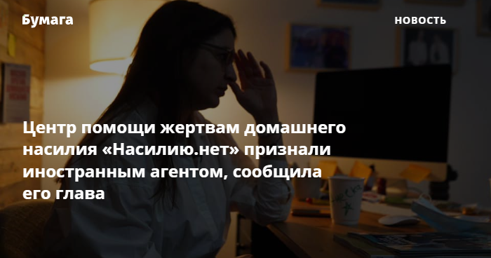 Центр помощи пережившим домашнее насилие «Насилию.нет» признали иностранным агентом. Об этом в фейсбуке сообщила его глава Анна Ривина.