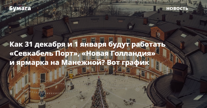 Как 31 декабря и 1 января будут работать «Севкабель Порт», «Новая Голландия» и ярмарка на Манежной