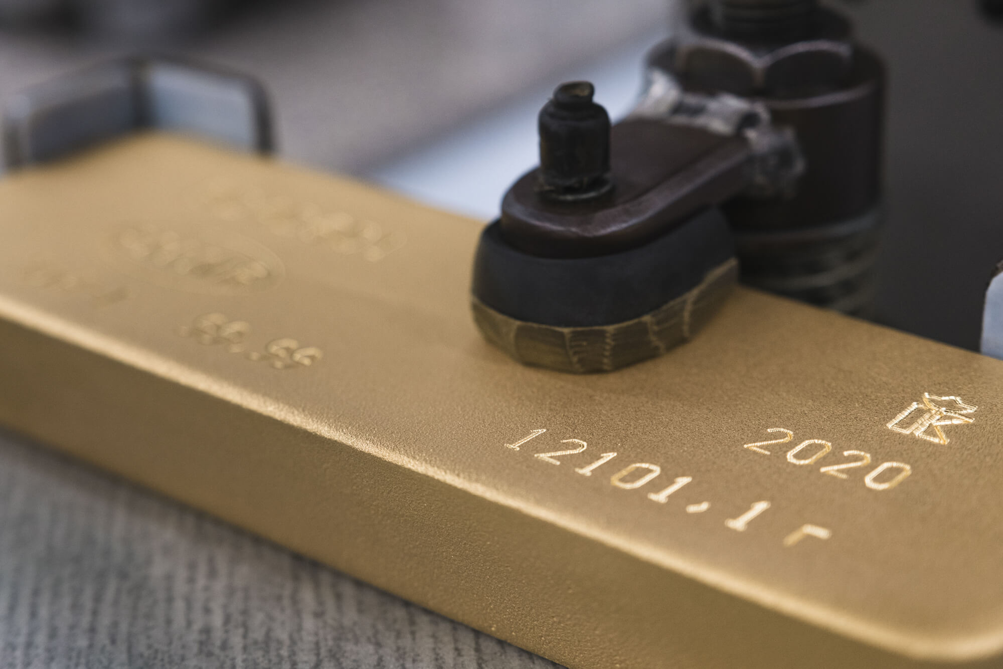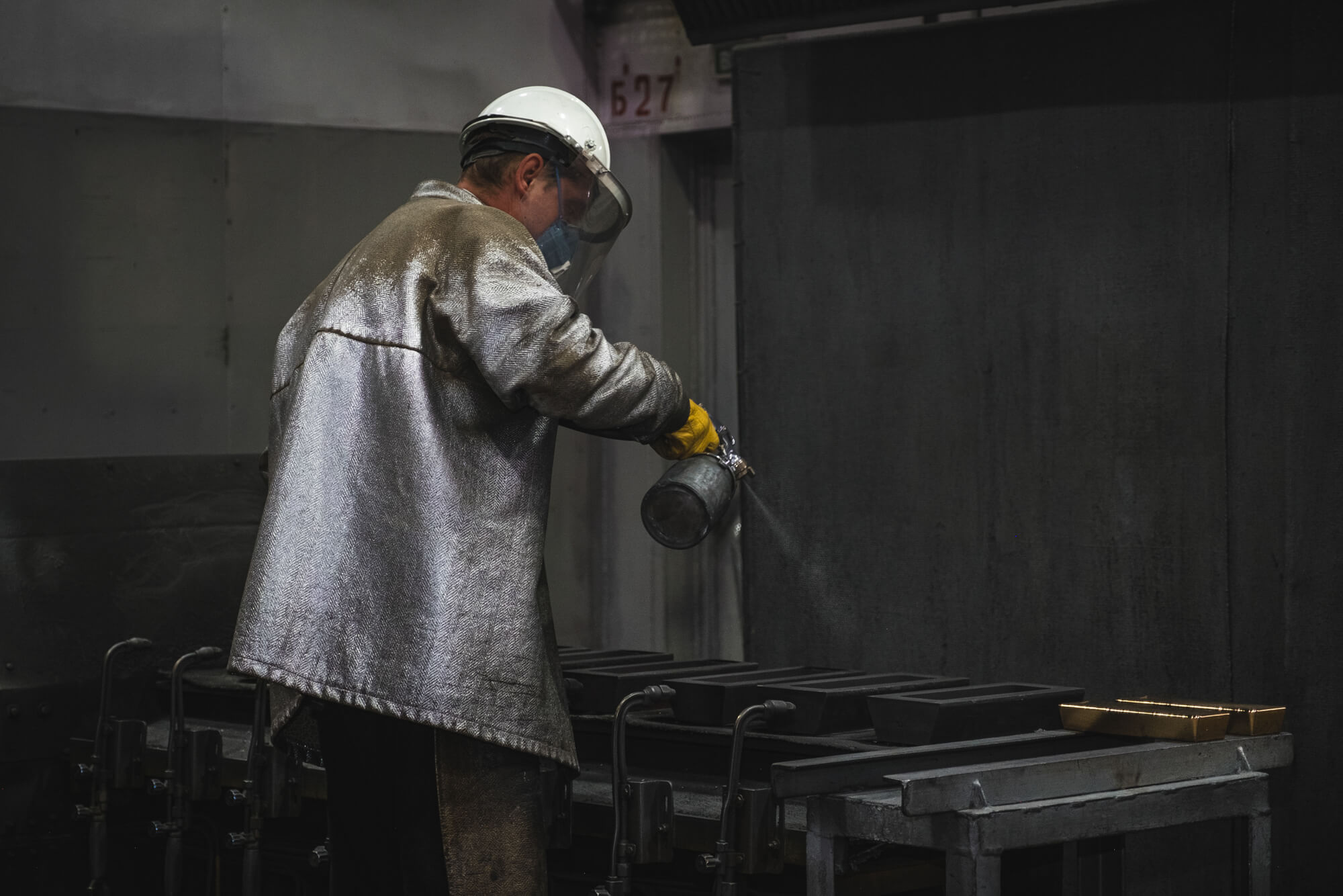 После химической очистки золоту придают нужную форму — гранул или слитков. Чтобы их получить, металл раскаляют не менее чем до 1070 °С. Параллельно в печи нагревают формы (изложницы), затем достают, напыляют на них графит и подогревают газом. Это помогает золоту остывать равномерно и не дает образоваться усадочной раковине. Разлив золота — в целом ручной труд. Плавильщики в огнеупорных костюмах умеют на глаз определить, сколько золота лить в форму, чтобы получить слиток нужного веса, а затем относят их горячими в небольшую ванну с прохладной водой — через нее ежегодно проходит 75% всего российского золота. В конце слитки отвозят на обработку, чтобы отшлифовать и снять все лишнее.