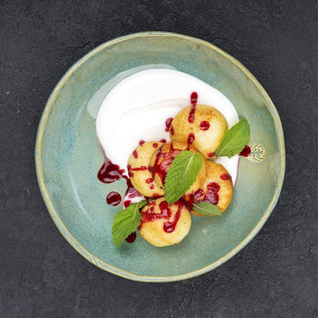 320 ₽ — сырники по-киевски с малиной и сметаной