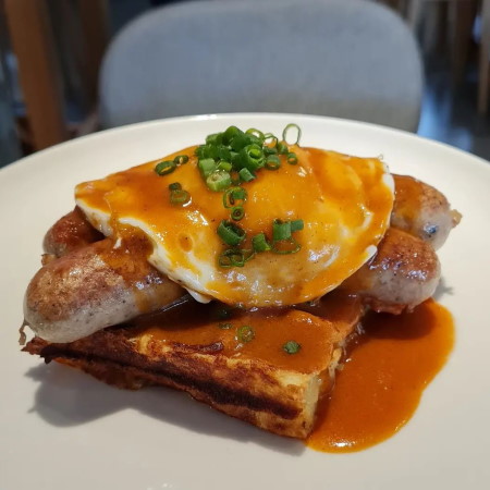 Шеф и совладелец израильского бистро на Большой Конюшенной — Антонио Фреза — тоже любит завтраки. Готовят в Saviv как восточные, так и интернациональные блюда — например, круассаны с шоколадом и фундуком или глазунью с черным трюфелем. Впрочем, израильский акцент всё же заметен: яйцо и авокадо упаковывают в питу, а брауни дополняют пастой тахини. Гостям также предлагают сеты: к круассану добавляют апельсиновый фреш и кофе (590 рублей), а к яйцу бенедикт — бокал кавы (750 рублей).