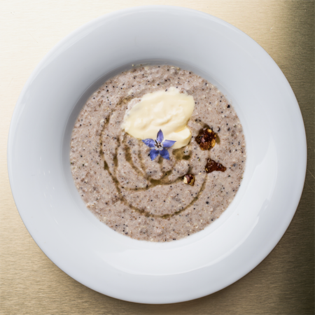 420 ₽ — полба с белыми грибами, пармезаном и яйцом пашот