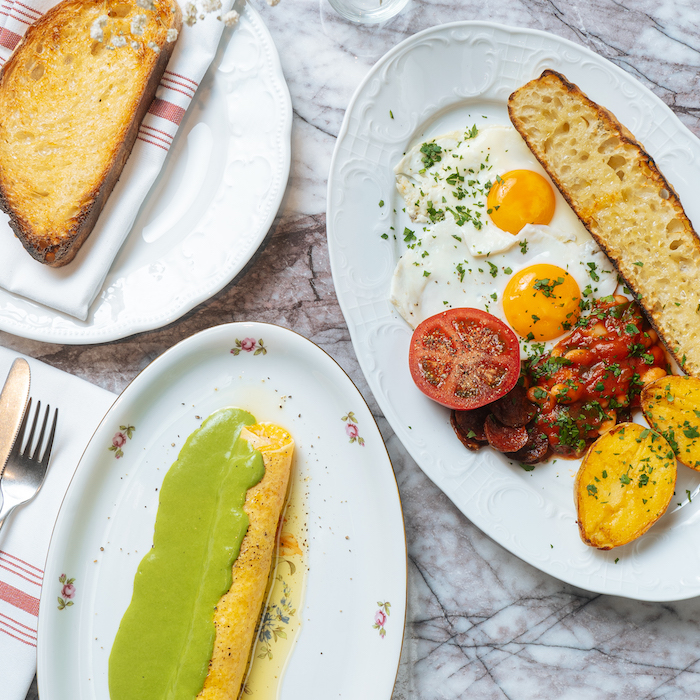 В ресторане Марии Основской и Максима Дмитриева на 2-й Советской завтраки подают с раннего утра. Гостям предлагают два десятка позиций: круассаны, каши, гранолу, а также сытные блюда — например, скрэмбл с сосисками и тостами или омлет с креветкой и соусом терияки (его можно заказать и после завершения периода подачи завтраков). В отдельный раздел выделили сладкие позиции: сырники, панкейки, шоколадный ганаш, тарт татен и крем из маскарпоне.