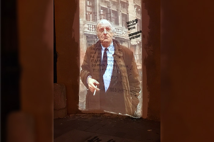 В Петербурге закрасили портрет Бродского — теперь на стене пишут стихи и проецируют на нее изображение поэта. А в соцсетях уничтоженный стрит-арт стал мемом