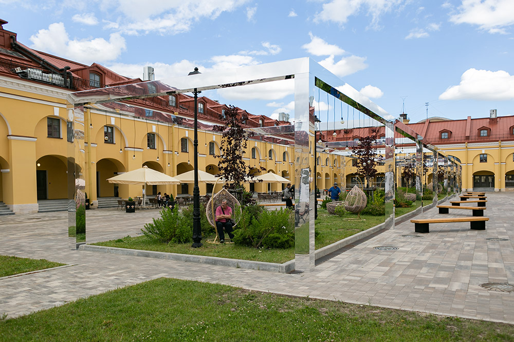 У «Петроградской» есть двор с «летающей» дверью и арт-объектами из скворечников и картинных рам. Его обустроил местный художник