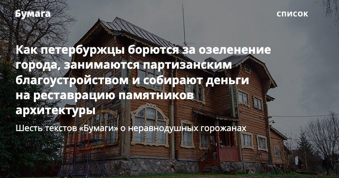 Как петербуржцы борются за озеленение города, занимаются партизанским благоустройством и собирают деньги на реставрацию памятников архитектуры — шесть текстов «Бумаги» о неравнодушных горожанах
