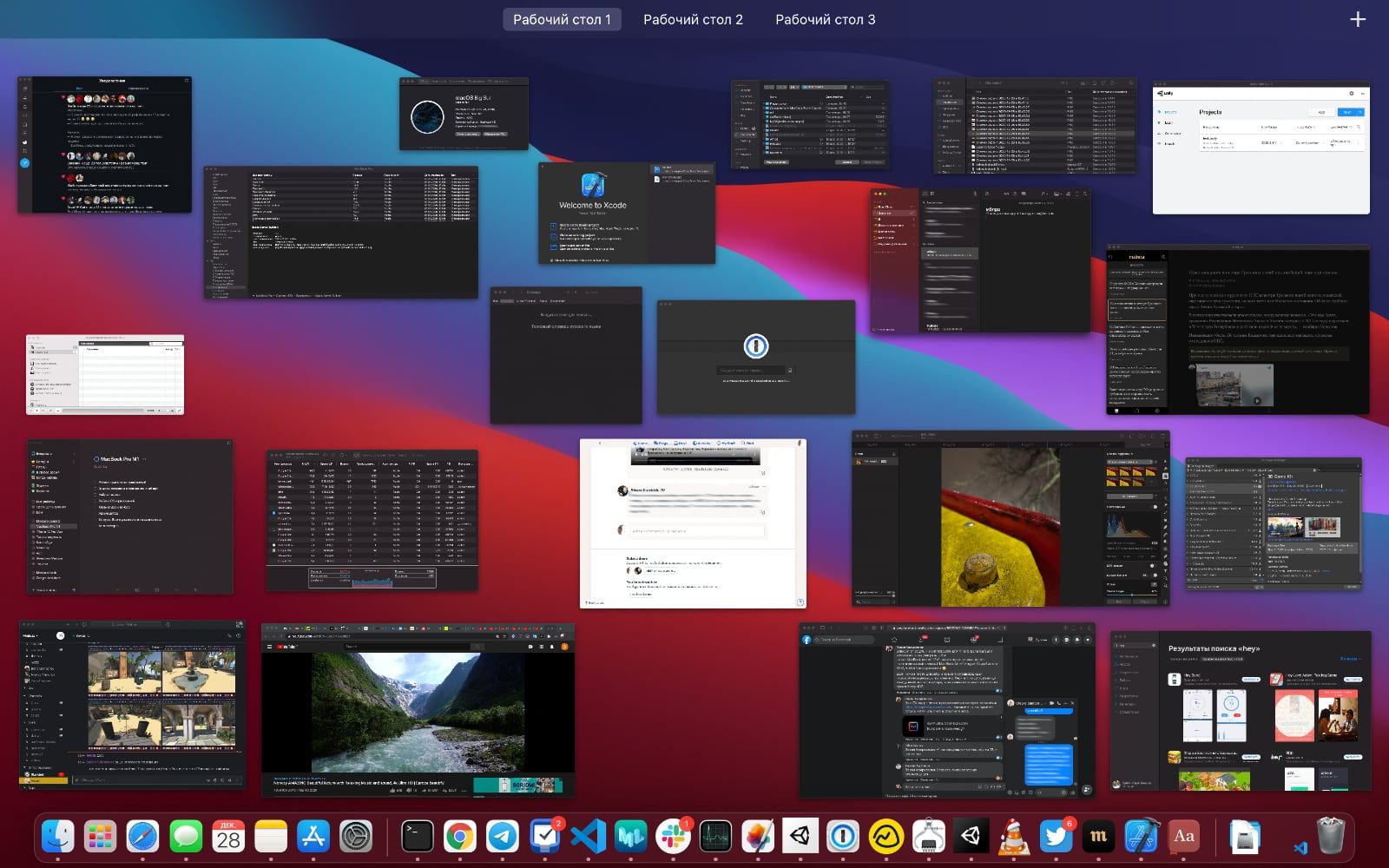 • в Chrome — 17 вкладок с вычурными сайтами, взятыми с Awwwards.com, и еще 7 вкладок с одновременно играющими 4K-видео на ютьюбе;