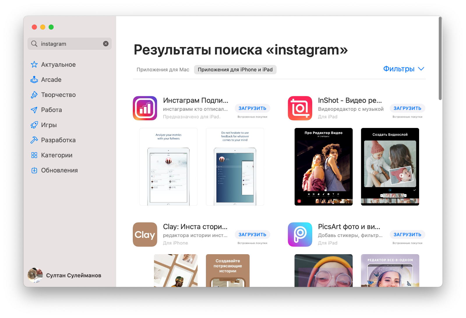 Делается это прямо в App Store: вы можете скачать приложения, которые уже покупали и устанавливали на свои мобильные устройства, или найти новые через поиск.