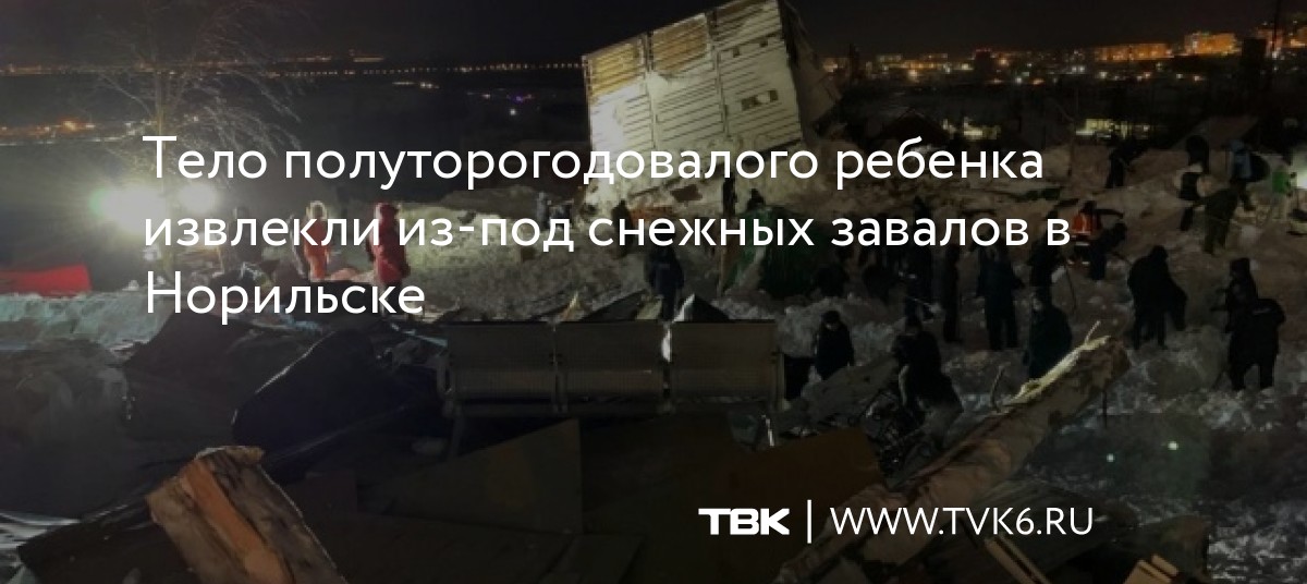 Тело полуторогодовалого ребенка извлекли из-под снежных завалов в Норильске