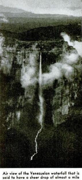 Помню, как профессор Скворцов, преподававший геоморфологию и новейшую тектонику, показывал нам узкий вертикальный снимок венесуэльского водопада Анхель, формат подчеркивает безумную высоту, с которой тот падает, только свободного падения 850 метров, а всего более километра, и где-то на половине этой высоты, обведенный кружочком (иначе не заметить), летит худенький самолет.