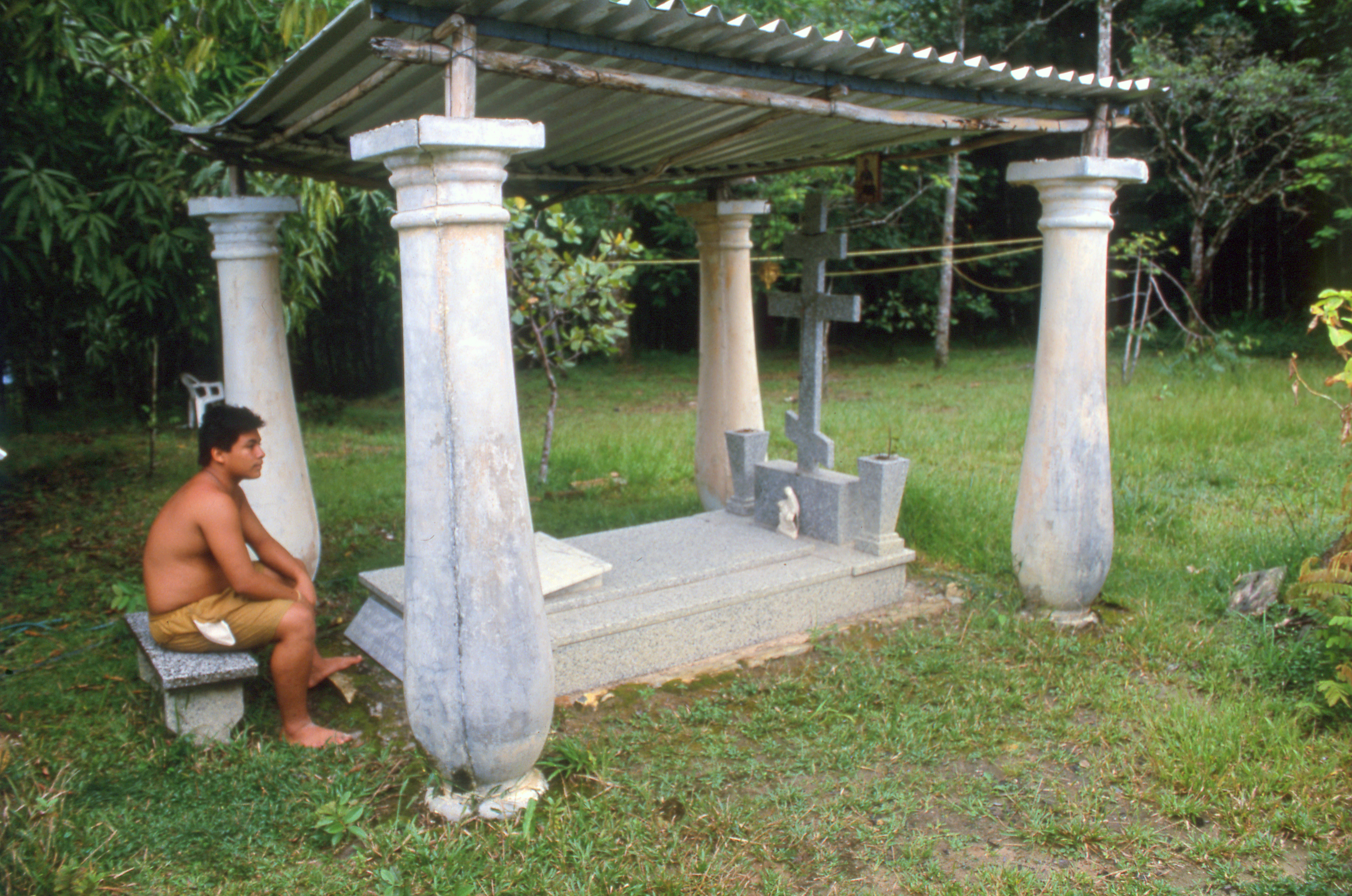Река Каррао, приток Ориноко, образует прелестную лагуну, в нее низвергаются семь примерно 30-метровых водопадов, а за ними, на горизонте, голубеют столько же тепуи. Лагуна разделена надвое большим холмистым островом, он обозначен на карте как Isla Anatoliy. В сельве острова индеец показывает православный крест и надгробие с надписью по-русски: "Анатолий Фёдорович Почепцов (12.7.26, Россия – 31.8.86, Канайма). Спи дорогой казак, шум этой реки тебе напоминает Тихий Дон". Оказывается, Анатолий прожил здесь много лет, а надгробье установили его сестры Галина и Людмила из Перу. Благодаря датам начало пути Анатолия Почепцова понятно: его 16-летнего и сестёр угнали на работу в Германию. Потом был лагерь Ди-Пи. А дальше? Что сделало его отшельником в здешних джунглях? Может быть, подобно персонажу романа Гальегоса "Канайма" графу Джиаффаро он поселился среди индейцев, возненавидев "мир белых людей"? Пытался позабыть какое-то горе? А может, он был вполне счастлив здесь, слушая неумолчный шум водопада Эль Сапо? Над могилой вились ласковые зелёные колибри.
