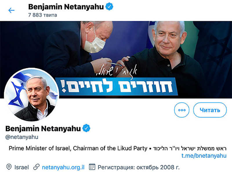Это фото Нетаньяху использовал в качестве фона своего аккаунта всю осень и зиму минувшего года, отмечает NEWSru.co.il. Теперь вместо него используется кадр, на котором премьер получает вакцину от коронавируса, с надписью "Граждане Израиля, возвращаемся к жизни!"