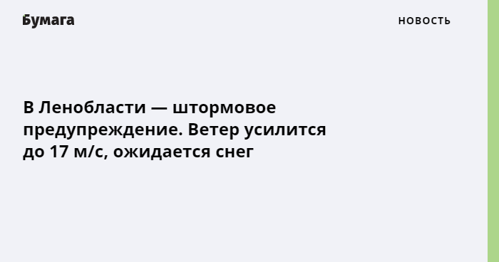 В Ленобласти объявлено штормовое предупреждение. Ветер усилится до 15–17 м/c, сообщает ГУ МЧС по региону.