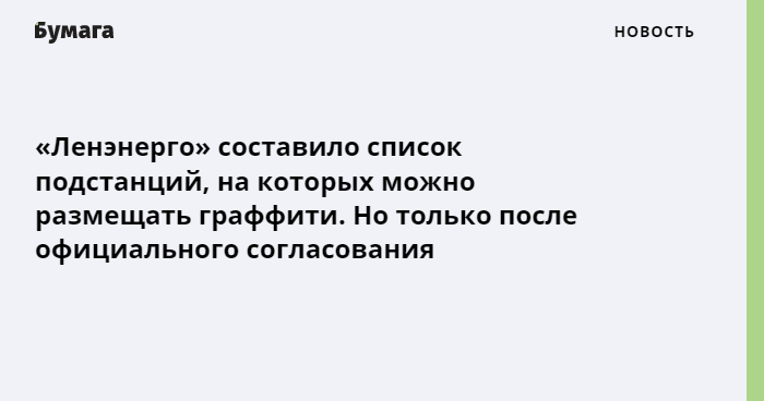 «Ленэнерго» составило список подстанций, на которых можно размещать граффити