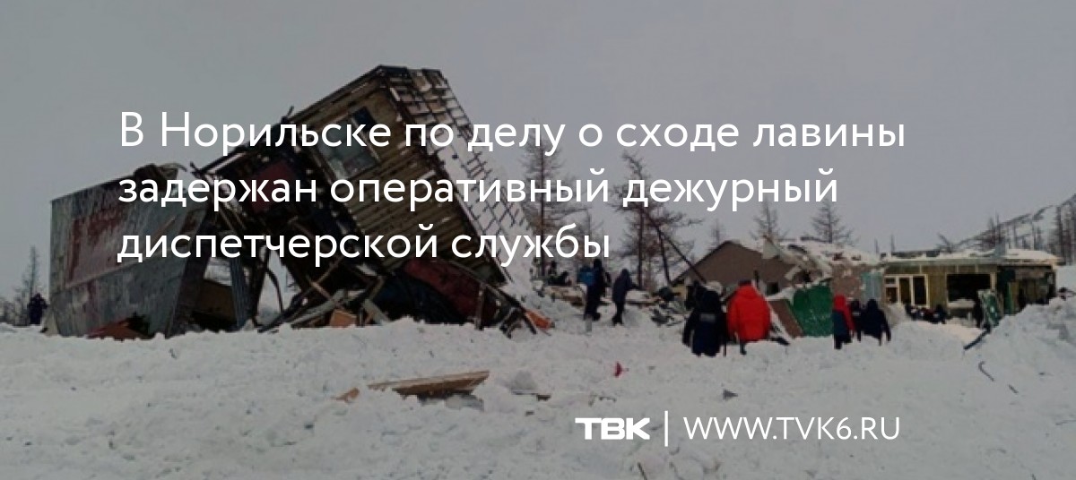 Сейчас оперативного дежурного единой дежурно-диспетчерской службы задержали. Возбуждено уголовное дело по статье «Халатность, повлекшая смерть двух лиц». Расследование продолжается.«В результате его халатных действий население, глава администрации города Норильска, структурные подразделения администрации города Норильска, иные органы и учреждения о лавинной опасности не предупреждены, превентивные мероприятия органами местного самоуправления на территории Красноярского края не приняты. В результате этого 8 января 2021 года около 23 часов под сошедшей с горы лавиной погибли три человека, еще один 14-летний подросток госпитализирован с тяжелыми травмами», – сообщили в СК.