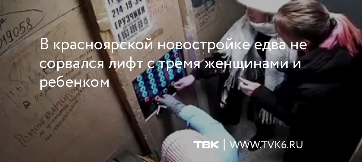 В Красноярске чуть не сорвался лифт с пассажирами в ЖК «Преображенском». Происшествие зафиксировали камеры. На записи видно, как в кабину заходят три девушки, у одной из них на руках маленький ребенок. Лифт тронулся, после чего его сильно тряхнуло три раза. Пассажирки пытались исправить ситуацию, нажимая на кнопки движения. После чего лифт остановился, и его двери открылись. Девушкам вместе с ребенком удалось спастись.