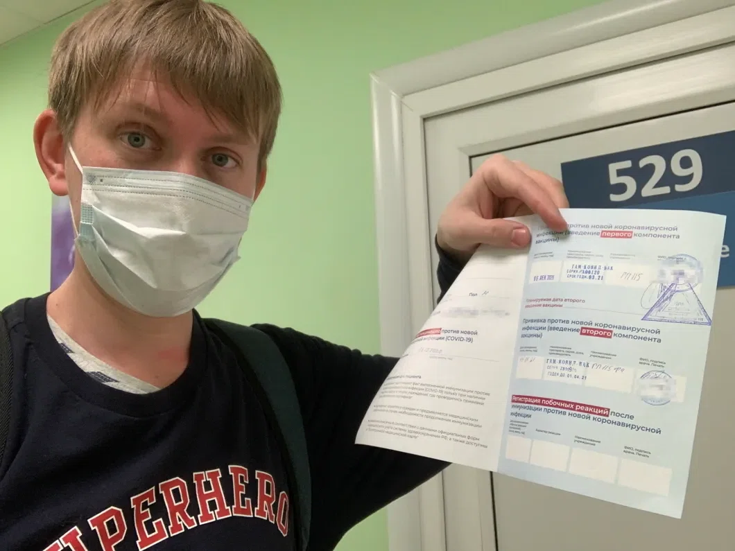 Поставить второй укол «Спутник V» мне должны были еще в конце прошлого года. После первой прививки, 6 декабря, врач сказал, что мне позвонят и вызовут. Но то ли не позвонили, то ли не дозвонились. А потом я уехал в Кировскую область, докуда массовая вакцинация на тот момент не добралась.