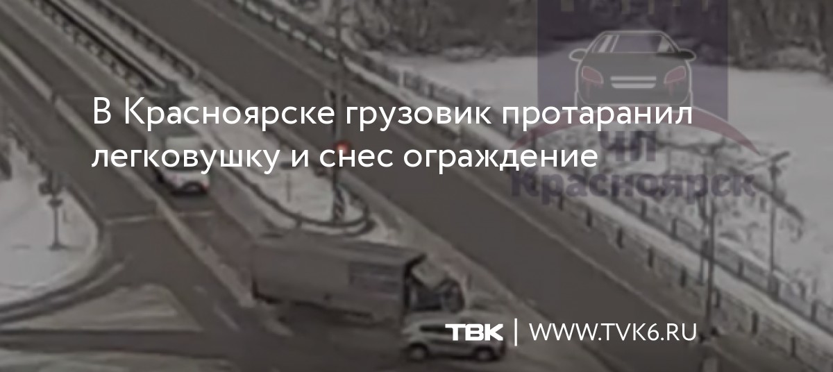 В Красноярске грузовик протаранил легковушку и снес ограждение
