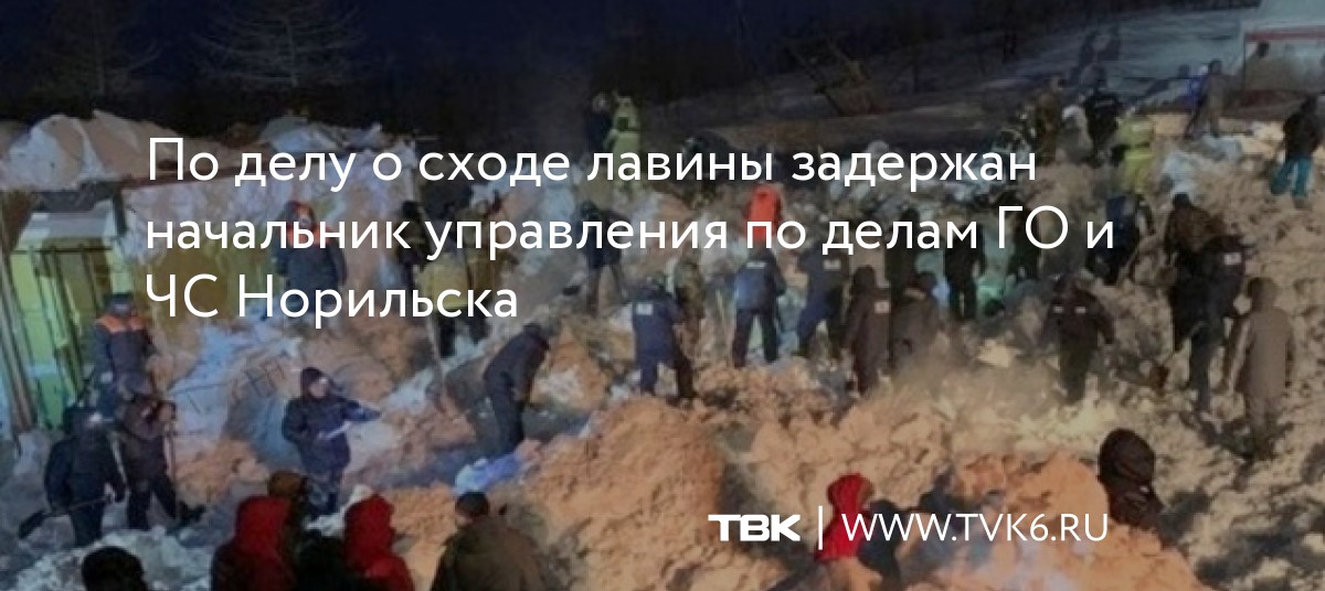 По делу о сходе лавины задержан начальник управления по делам ГО и ЧС Норильска