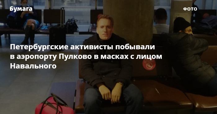 Петербургские активисты провели акцию в поддержку Алексея Навального, который возвращается в Россию из Германии. Они побывали в аэропорту Пулково в масках с лицом политика. Об этом «Бумаге» анонимно сообщил один из активистов.