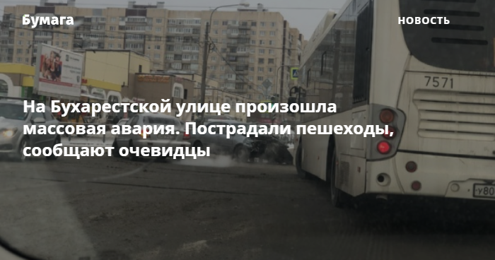 На перекрестке Бухарестской улицы и улицы Олеко Дундича столкнулись несколько автомобилей. Очевидцы сообщают, что в результате ДТП пострадали пешеходы.
