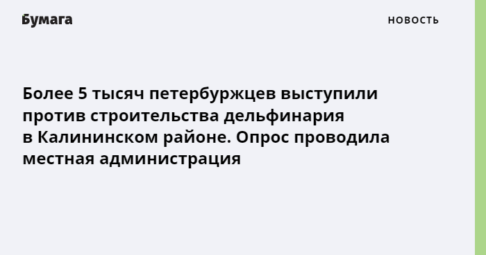 Петербуржцы выступили против проекта. Согласно опросу местной администрации, более 5 тысяч пользователей считают, что «дельфинарии — это тюрьма для дельфинов». За дельфинарий проголосовало 1,5 тысячи человек.