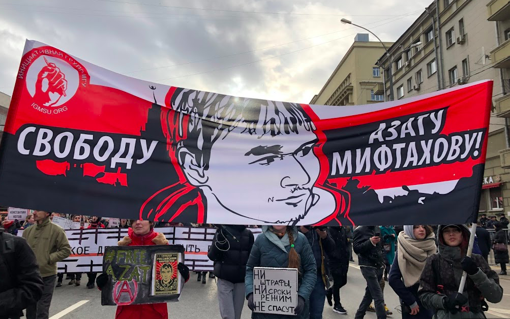 В понедельник Головинский суд Москвы вынес приговор аспиранту механико-математического факультета МГУ Азату Мифтахову и другим обвиняемым по делу о поджоге офиса "Единой России". Мифтахова признали виновным и назначили ему наказание в виде шести лет колонии общего режима. Другим подсудимым – левым активистам Андрею Ейкину и Елене Горбань – назначили условные сроки.