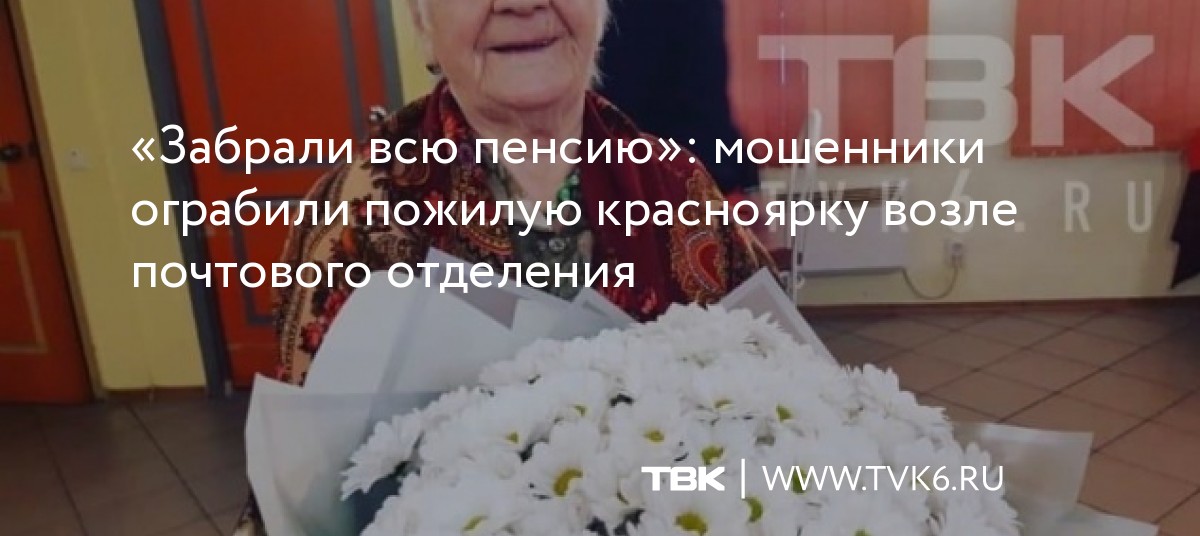 О случившемся «ТВК Красноярск» рассказала невестка Анны Константиновны Татьяна. Все случилось 15 января. Анна Константиновна как обычно пришла на почту за пенсией. Ее пропустили без очереди, поэтому она быстро получила деньги, сложила их в сумку и направилась к выходу.