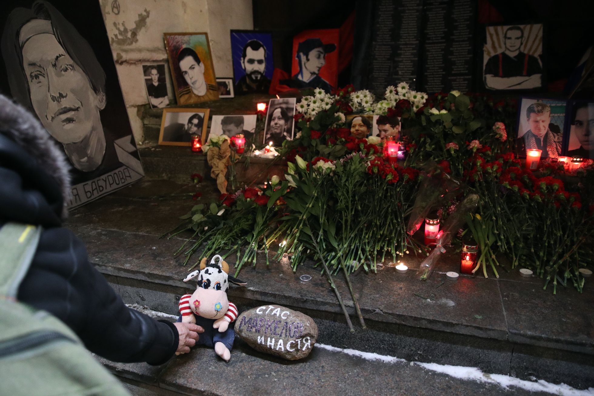 Евгений Фельдман для «Медузы» На улице Пречистенка в центре Москвы состоялось возложение цветов на месте убийства адвоката Станислава Маркелова и журналистки Анастасии Бабуровой, совершенного националистом Никитой Тихоновым 19 января 2009 года. Ежегодно в этот день антифашисты проводят марш памяти убитых, но в этом году власти отказались согласовать его из-за карантинных ограничений.