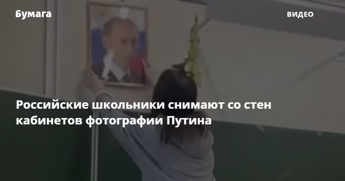 Школьники снимают портреты Путина, которые висят в классах