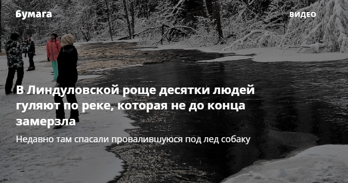 В Линдуловской роще десятки человек гуляют по реке Рощинке, которая не до конца замерзла. Люди подходят к воде ради снимков, а иногда встают на отколовшиеся льдины. Фотографии и видео опубликованы в соцсетях.