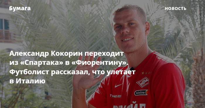 Бывший нападающий футбольного клуба «Зенит» Александр Кокорин перейдет из «Спартака» в итальянскую «Фиорентину». Об этом сообщил московский клуб.