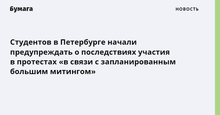 В колледже водных ресурсов в Петербурге проводят профилактические беседы со студентами «в связи с запланированным большим митингом». Об этом пишет «Фонтанка» со ссылкой на заместительницу директора по учебно-воспитательной работе учреждения Юлию Бондаренко.