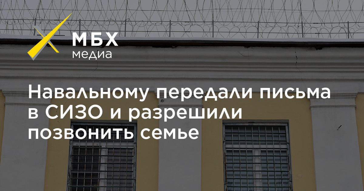 Алексею Навальному, который находится под арестом в СИЗО «Матросская тишина», передали письма и разрешили позвонить семье. Об этом «МБХ медиа» сообщил адвокат Вадим Кобзев.