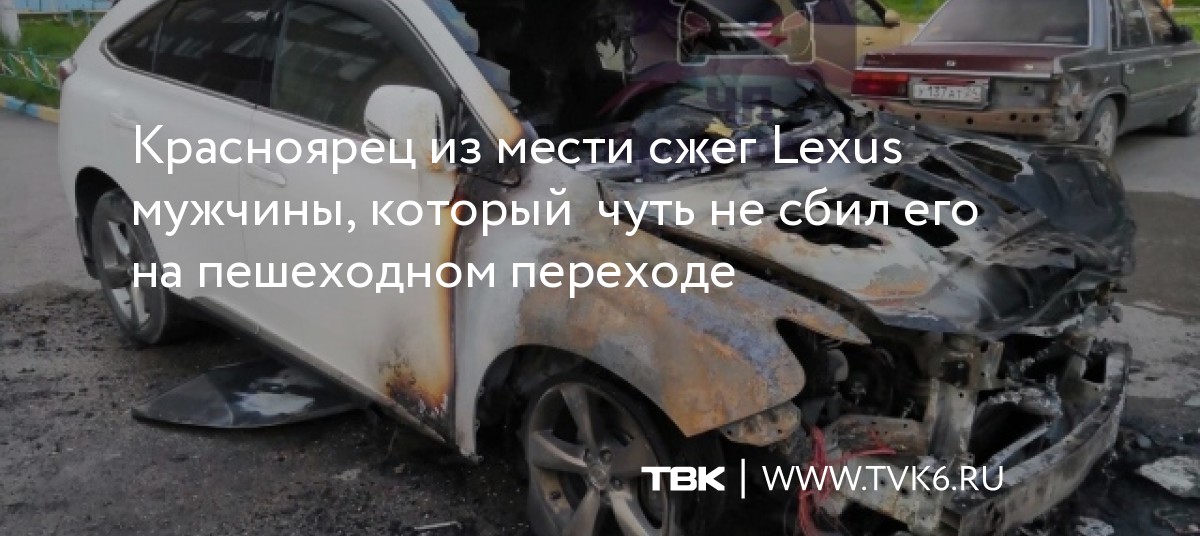 Красноярец из мести сжег Lexus мужчины, который чуть не сбил его на пешеходном переходе