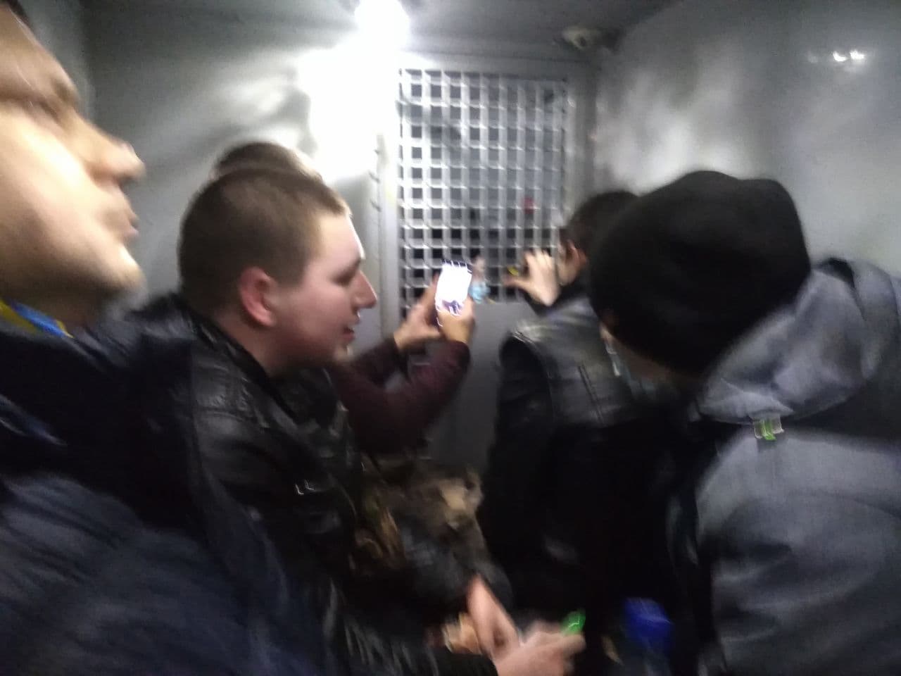 Поступила информация от задержанной активистки Натальи Барановой: “Нас уже 40 минут возят туда-сюда. Тут душно, жарко, буквально нечем дышать. Сумки и рюкзаки отняли и положили отдельно”.