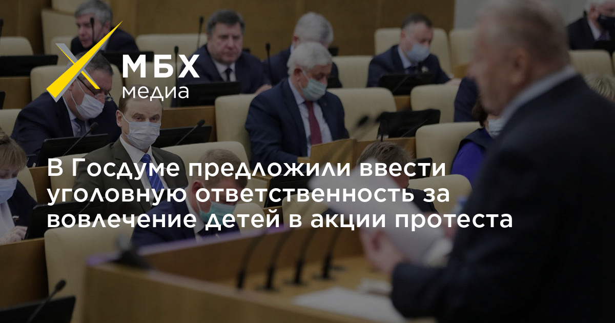 Депутат Госдумы Евгений Марченко разработал законопроект, который вводит уголовную ответственность до пяти лет лишения свободы за вовлечение несовершеннолетних в акции протеста и до десяти лет — за «склонение к организации массовых беспорядков». Марченко объясняли такую необходимость тем, что сейчас, пока это административные правонарушения, по ним штрафуют «кого попало», а реальные организаторы уходят от ответственности, уголовное расследование будет более тщательным, передают РИА Новости. В качестве еще одного обоснования необходимости криминализации этих правонарушений приводится «нарастающая угроза нелегитимной политической борьбы».