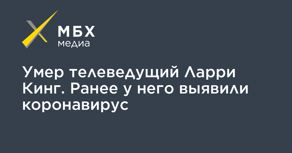 Американский телеведущий Ларри Кинг умер в возрасте 87 лет. Об этом сообщается в его твиттере. 3 января он был госпитализирован после положительного теста на коронавирус.