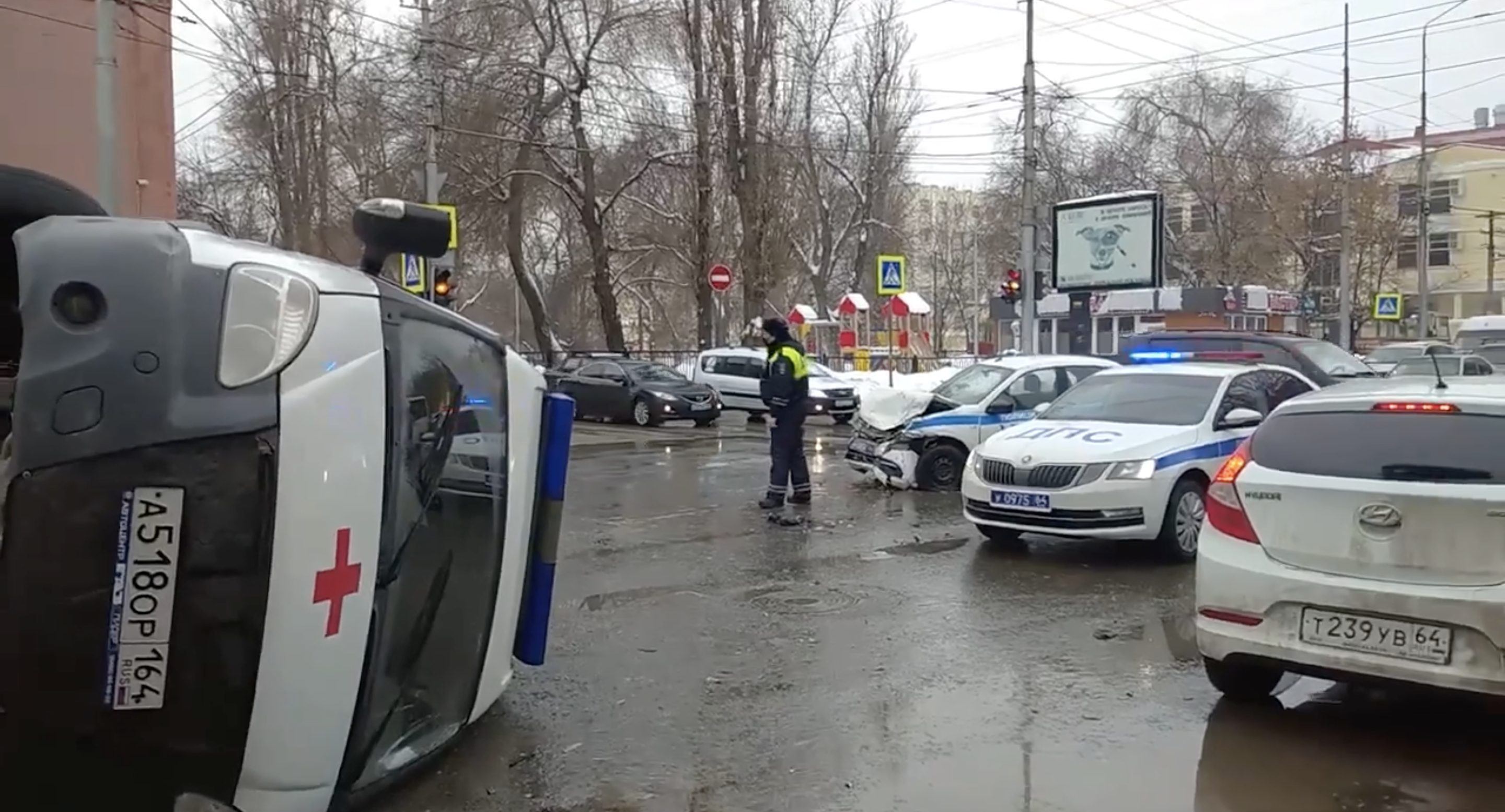 В Саратове машина скорой помощи перевернулась после столкновения с полицейскими; пациент умер