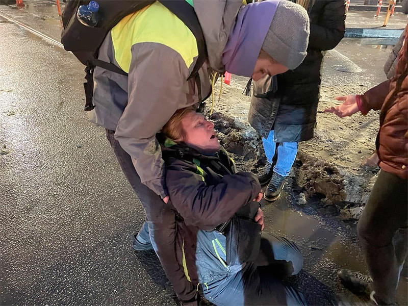 Вечером 23 января на площади Восстания петербуженка Маргарита Юдина преградила дорогу двум сотрудникам ОМОН, попытавшись спросить у них, почему они так грубо задерживают молодого человека. В ответ на это, как видно на видео, один из силовиков пнул ее ногой в живот, после чего женщина упала и ударилась затылком об асфальт.