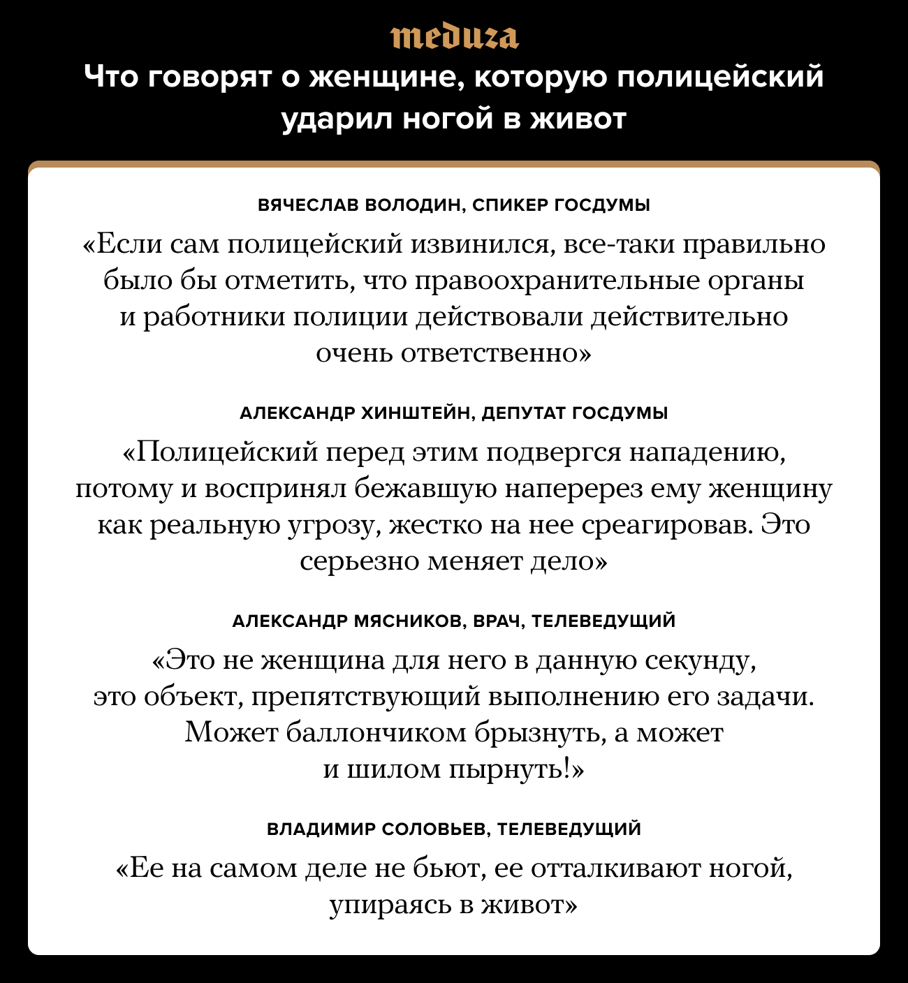 Как сторонники власти оправдывают полицейского, ударившего женщину в живот