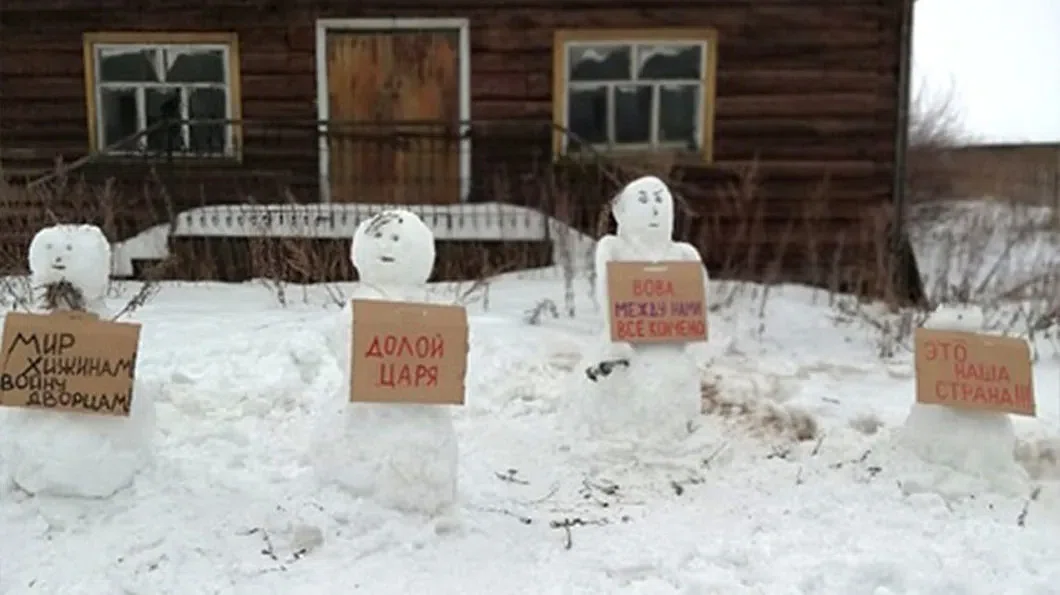 Прямо скажем, снеговики размечтались. Плакатики были те еще: «Долой царя», «Вова, между нами все кончено», «Это наша страна!!!» и «Мир хижинам, войну дворцам». Еще бы «Фабрики – рабочим!» потребовали!