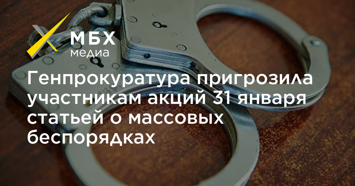 Генпрокуратура пригрозила статьей УК о массовых беспорядках за участие в несогласованной акции 31 января. Об этом сообщает РИА Новости со ссылкой на надзорное ведомство.