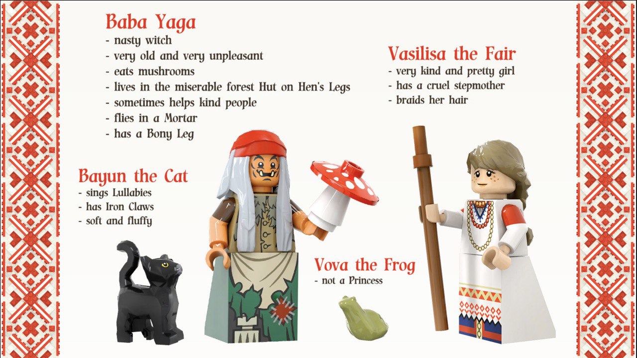 В предлагаемом Артемом Бизаевым наборе Lego есть Баба-яга, Василиса Прекрасная, избушка на курьих ножках, черный кот и другие герои славянских сказок.