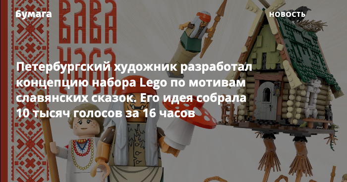 Петербургский художник Артем Бизяев разработал концепцию Lego по мотивам славянских сказок и опубликовал свой проект на сайте Lego Ideas. Об этом он рассказал на своей странице в твиттере.